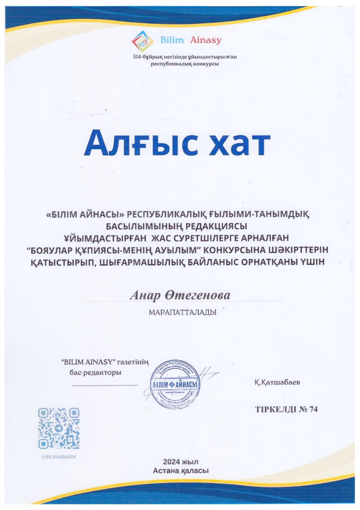 Өтегенова Анар Жеңісқызы